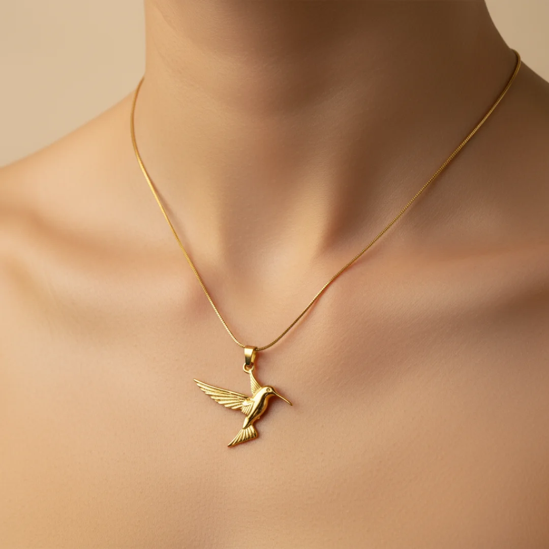 Base Metal: High-quality Stainless Steel Plating: 18k Gold-Plated Finish Necklace Type: Pendant Necklace Pendant Design: Sculpted Hummingbird Finish: Glossy, Detailed