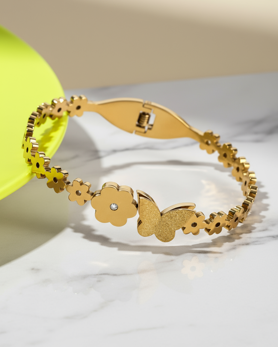 Add a whimsical touch to your jewelry collection with our Graceful Butterfly & Flower Bracelet. Crafted in high-quality stainless steel, it features beautifully detailed butterflies and flowers, accented with dazzling zircons for a subtle sparkle. Lightweight and easy to fasten, this bracelet offers both style and comfort for everyday wear or special moments.
