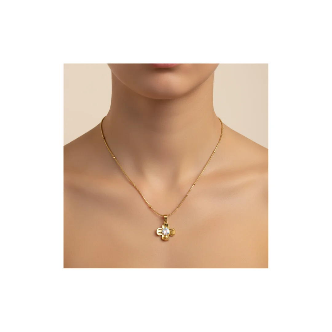 Opaline Bloom Pendant Necklace – Gold-Plated Modern Elegance