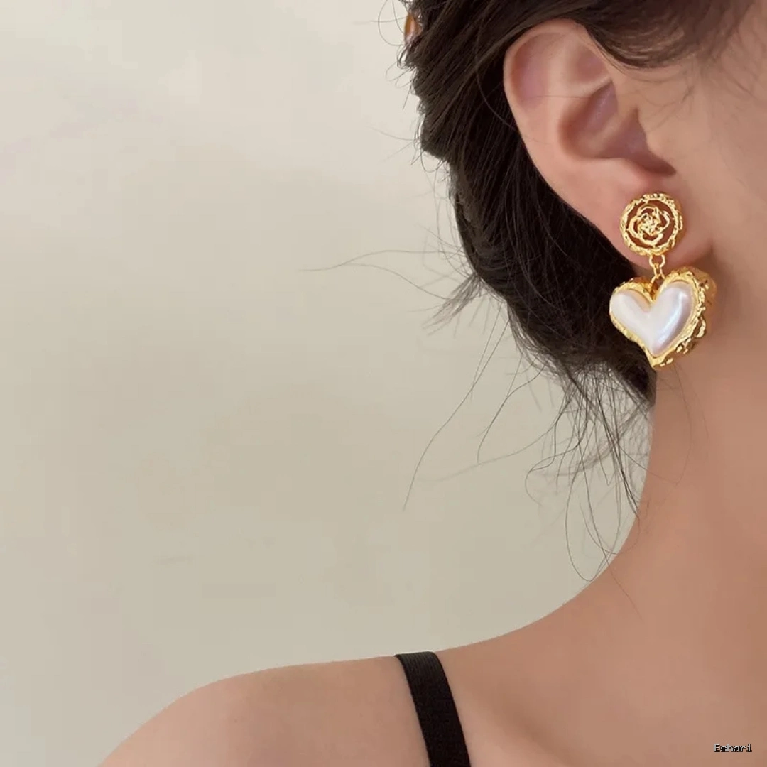 Layer hair behind your ears to showcase the graceful pearl heart drop