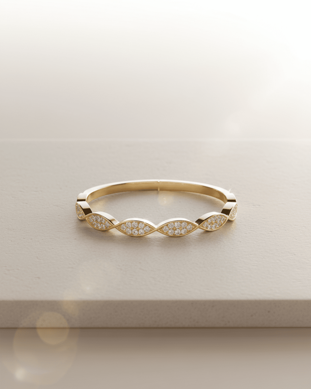 A timeless gold bangle featuring marquise-shaped sections adorned with brilliant pavé-set stones for an effortlessly sophisticated style.