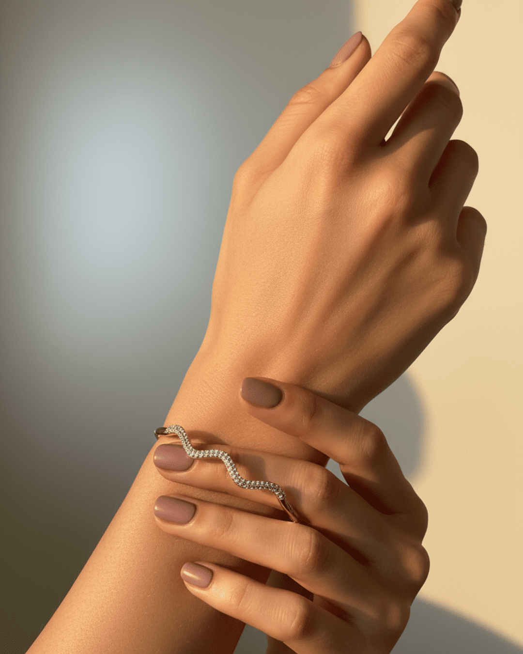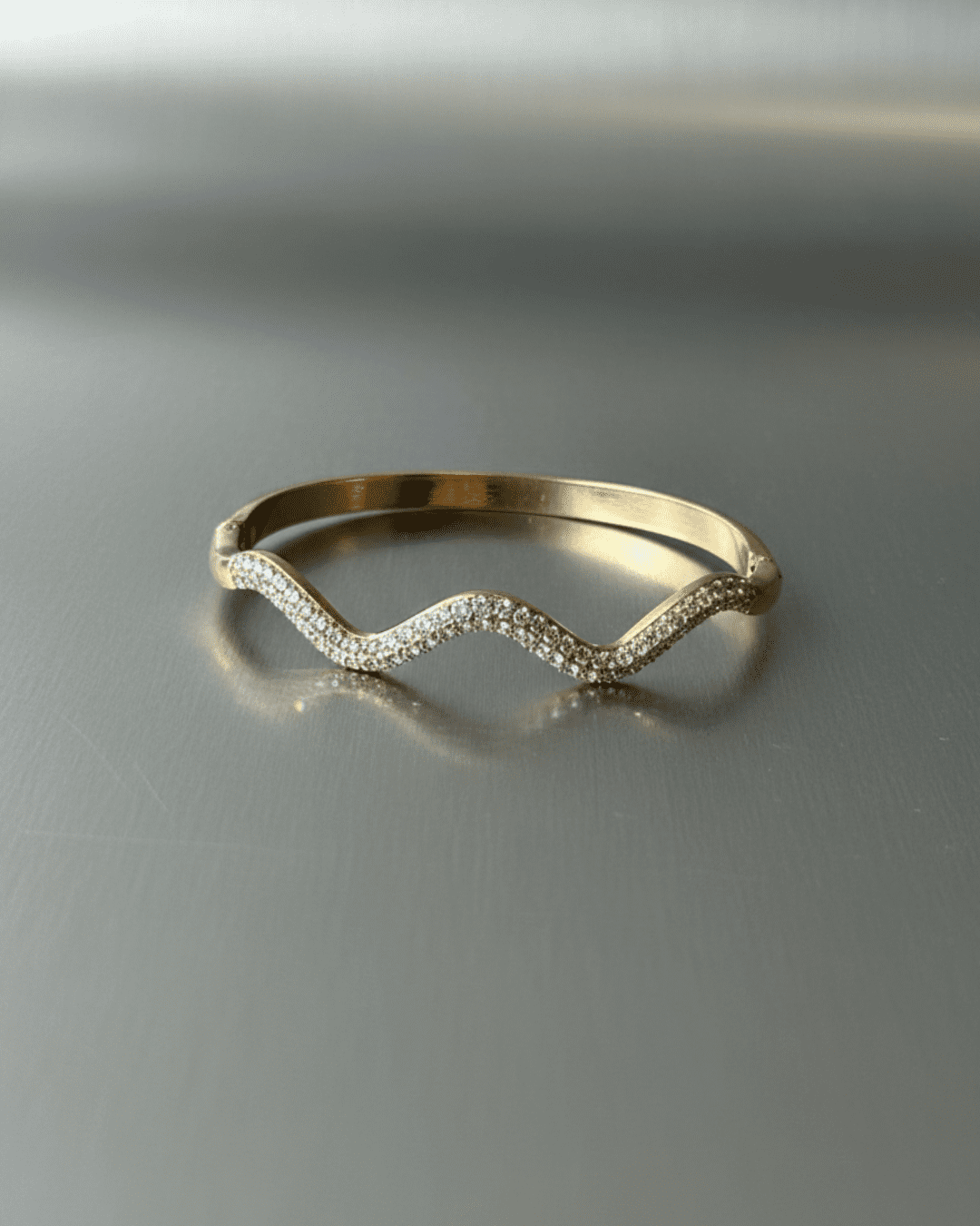 Styling Tip: Pair with minimal stud earrings and a sleek watch to accentuate its wave design, or layer with other bangles for extra sparkle at festive occasions.